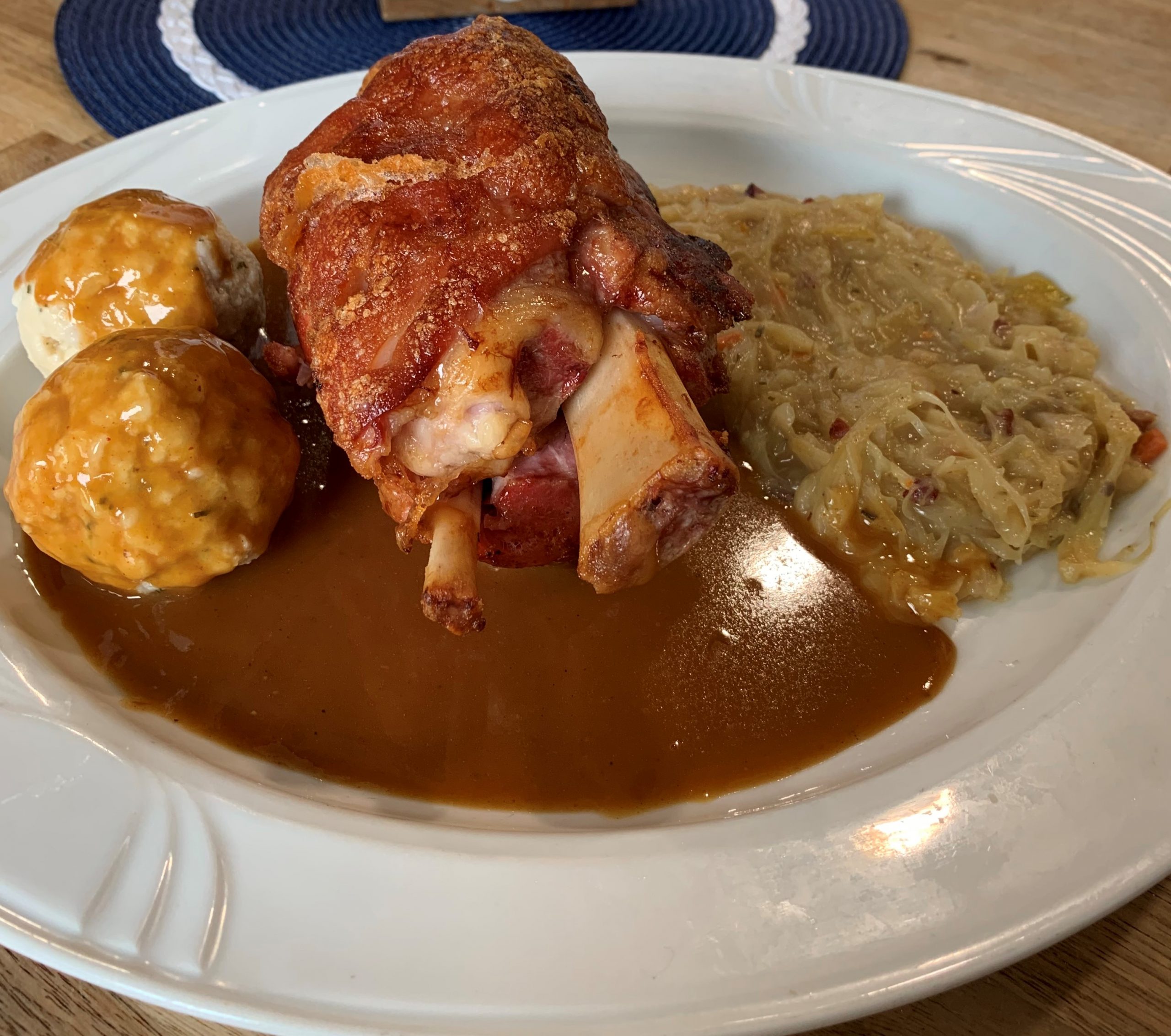 Freuen Sie sich auf deftige Schmankerl wie knusprige Schweinshaxn, Leberkas, Weißwürste mit süßem Senf und bayerischem Oktoberfest-Bier.